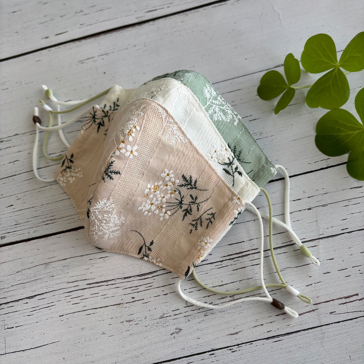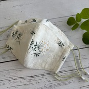 不織布マスクカバーにも使用している野の花綿レース生地の中から人気のオフホワイト、ペールグリーン、ベージュ色でマスクを作製いたしました♪