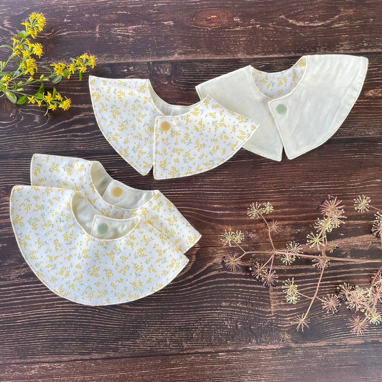 #360°まるいスタイ #まるいスタイ #ミモザスタイ #スタイ #ミモザ柄 #ヨダレかけ